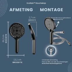 Eagle Bath & Shower – Douchekop Met Slang – Mat Zwart – 3 Functies – Handdouche – Hoofddouche