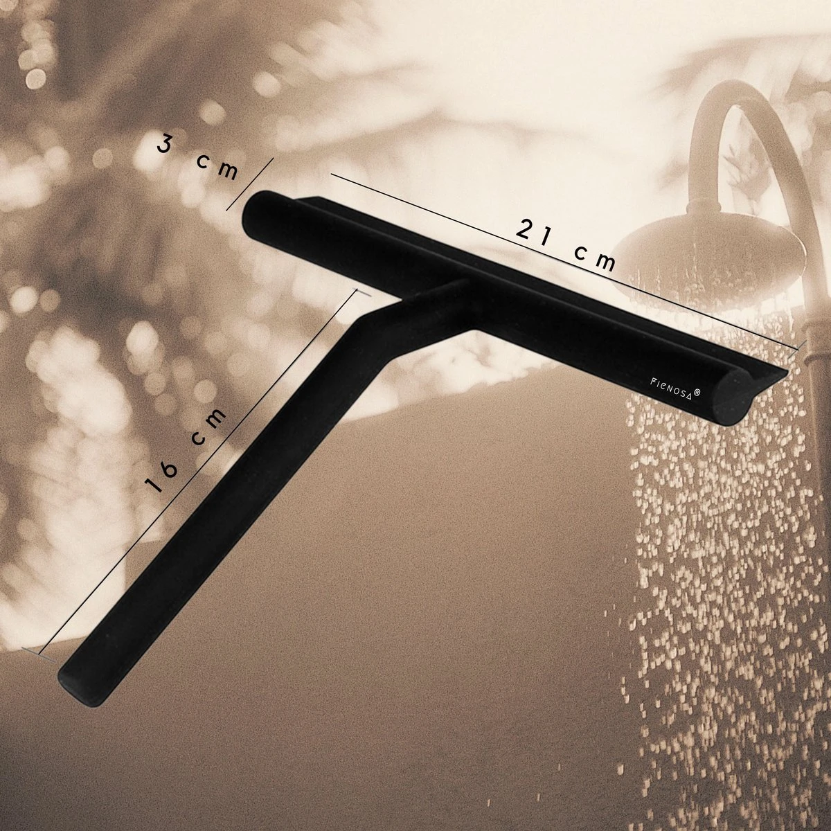 Met de stijlvolle Fienosa zwarte douchewisser van zacht silliconen heb je gegarandeerd een streeploos schone badkamer.