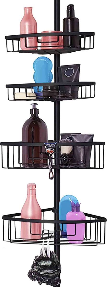Met het doucherek van Goliving zet je al jouw douchespullen overzichtelijk in een rekje. Door het slimme ontwerp blijft er geen water in staan, en han je accessoires zoals scheermesjes makkelijk op hun plek. Dankzij de telescopische stang komt er geen boor of ander gereedschap aan te pas!
