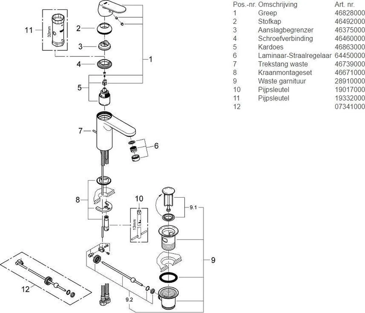 - Opbouwhoogte onderkant kraanmondstuk: 9,8 cm
