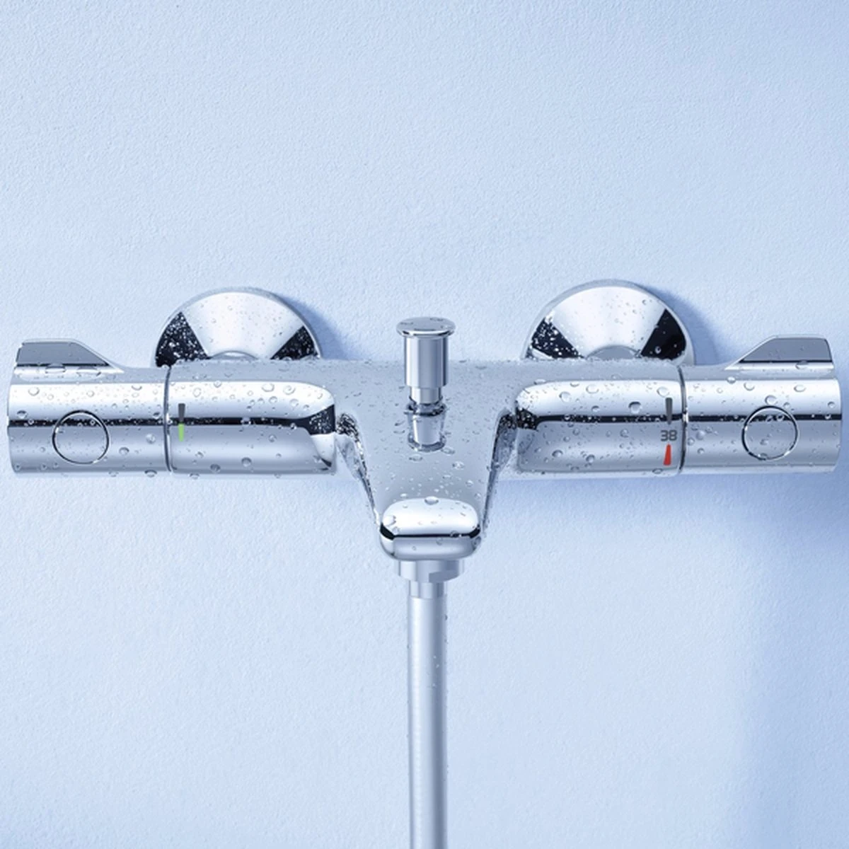 Met deze GROHE Grohtherm 800 badkraan hoef je nooit meer elke keer de watertemperatuur te regelen met koude en warme knoppen. De GROHE TurboStat® technologie zorgt ervoor dat het water altijd op de door jou ingestelde temperatuur staat. Die stel je overigens heel eenvoudig en precies in met behulp van de duidelijke aanduiding op de greep.