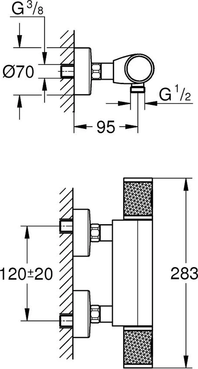 De veilige GROHE SafeStop knop wordt zeker gewaardeerd door gezinnen. Via deze functie kun je de watertemperatuur namelijk van tevoren limiteren op 38°C zodat het water niet te heet wordt. Ook aan het milieu en het besparen van kosten is gedacht! Zo bespaar je via de waterbesparende GROHE EcoJoy functie automatisch op je waterverbruik zonder in te leveren op je douchecomfort. Afgewerkt met GROHE StarLight chroom blijft de GROHE Precision Feel thermostatische douchemengkraan jaar na jaar krasvrij en prachtig van glans. OPMERKING: de hartafstand voor montage tussen de bevestigingspunten is 120 mm.
