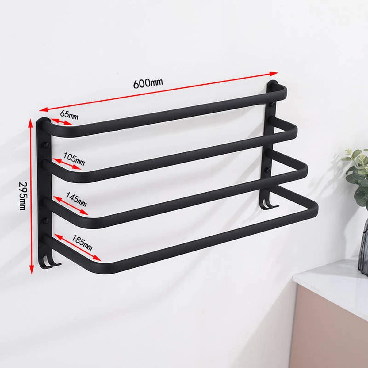 Dit mooie mat zwarte handdoekrek van roestvrijstaal past in ieder interieur. Maak jouw badkamer af met unieke zwarte accessoires zoals dit bijzondere handdoekhouder voor de handdoeken. De houder beschikt over een afmeting van 600 mm x 295 mm . Wordt geleverd inclusief bevestigingsmaterialen.