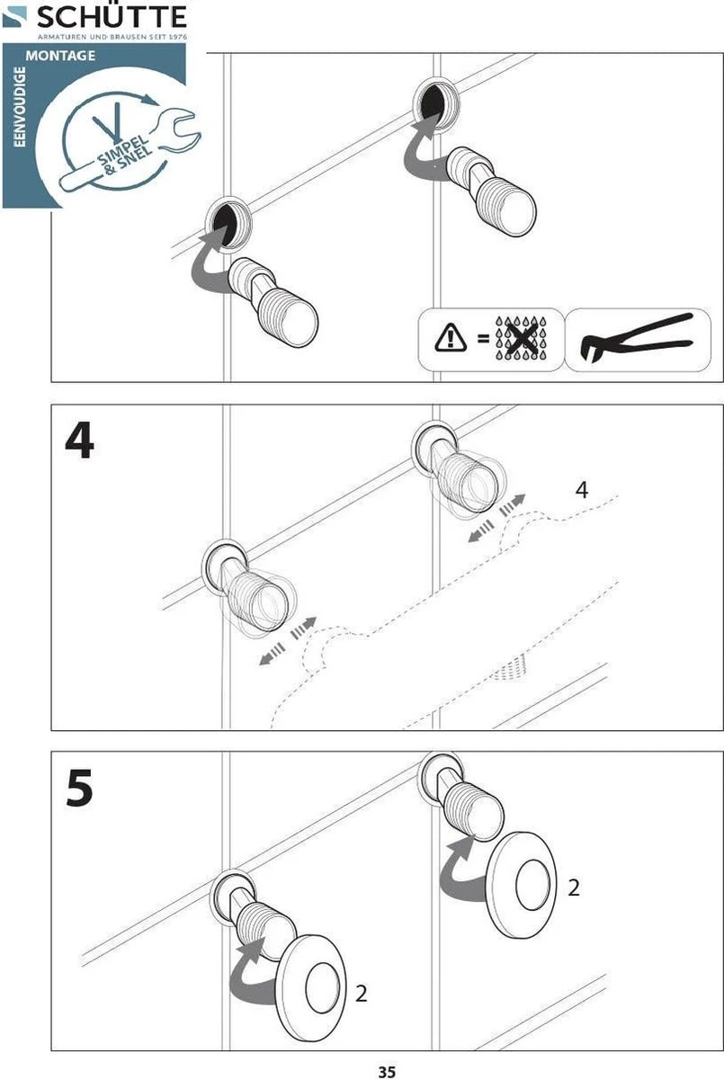 | Verpakkingsinhoud | Kraan, rosetten, pakkingen, s-aanslutingen, montagehandleiding in diverse talen, o.a. in het Nederlands |