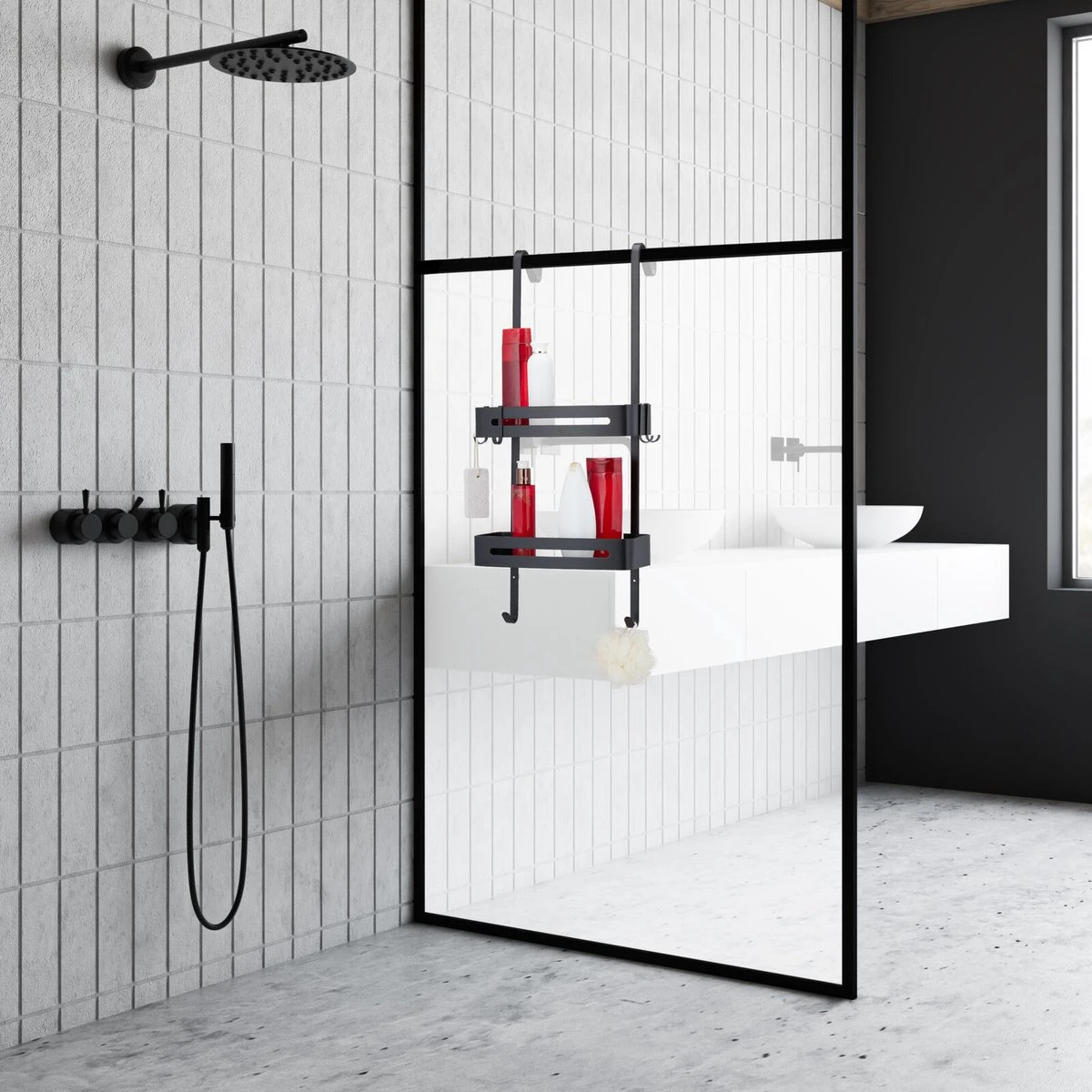 Het doucherek wordt bevestigd door het rek eenvoudig aan de douchewand of zijkant op te hangen. Boren of gebruik van lijm zijn niet nodig, hierdoor ontstaat er geen enkele schade aan de douchewand. De zuignapjes aan de achterzijde zorgen voor een betere stabiliteit én dat het glas niet beschadigd.