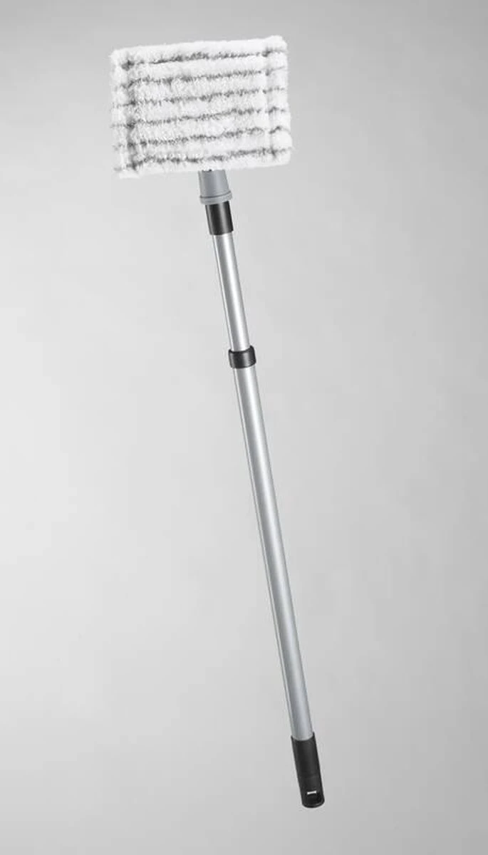- De telescopische steel kan worden uitgeschoven van 65 cm tot 95 cm om zelfs moeilijk bereikbare plaatsen te bereiken.